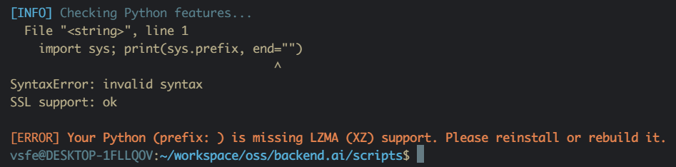 show_error "Your Python (prefix: ${_pyprefix}) is missing LZMA (XZ) support. Please reinstall or rebuild it."