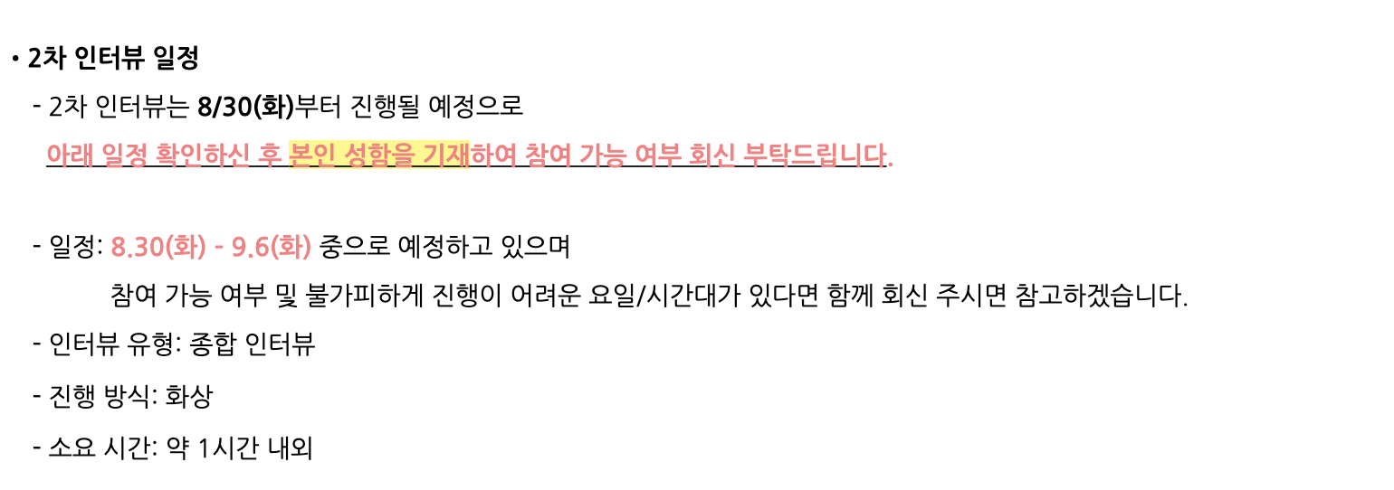 2차 인터뷰는 8/30 (화)에 진행했다. 1차 인터뷰와 마찬가지로 첫날에 보게 되었는데, 그날 오전에 카카오 인턴 전환 결과가 발표되었다!